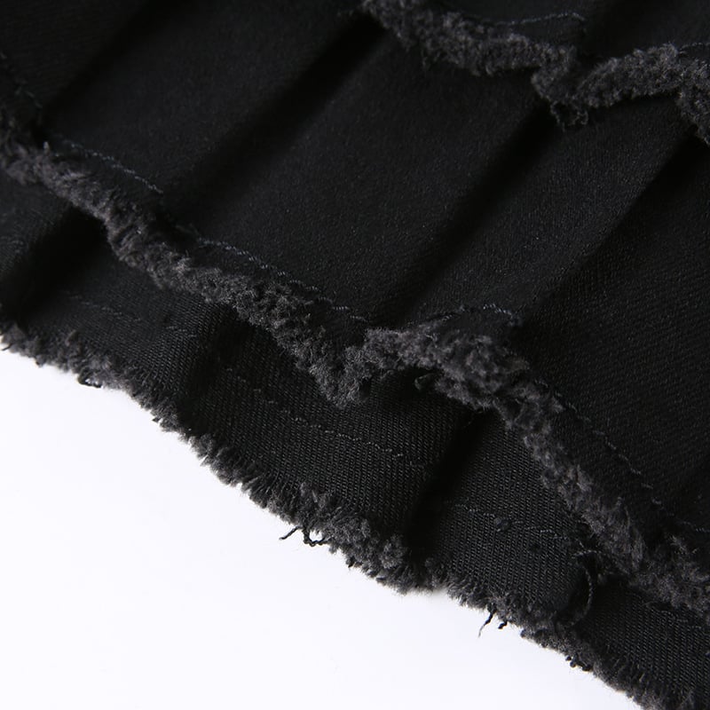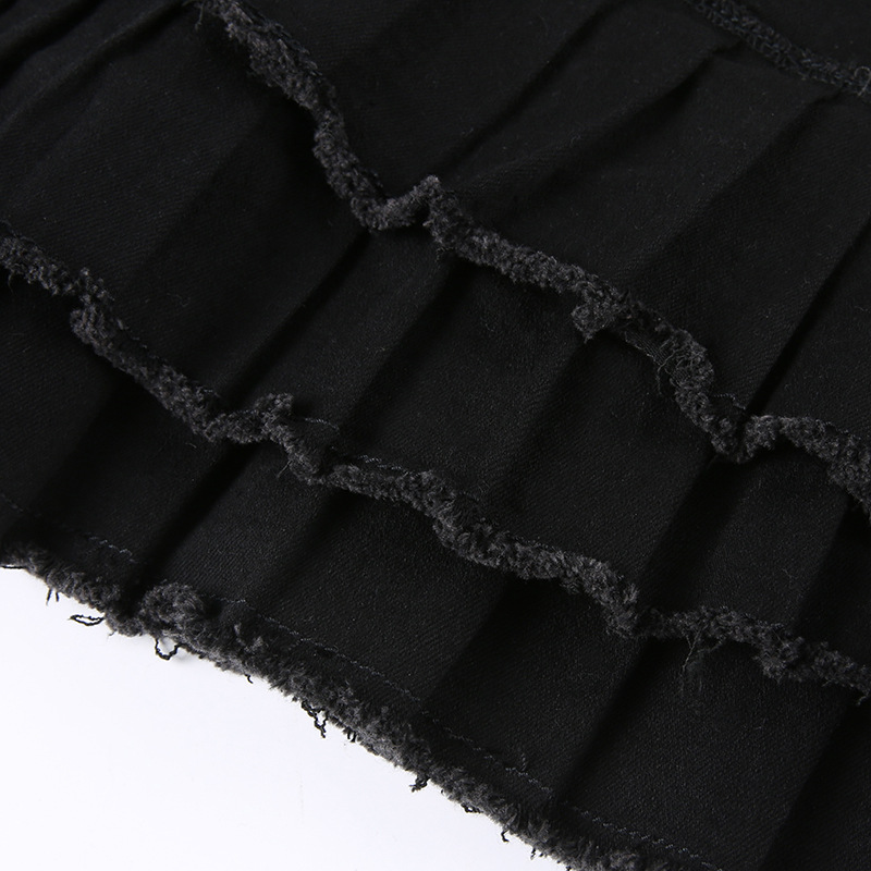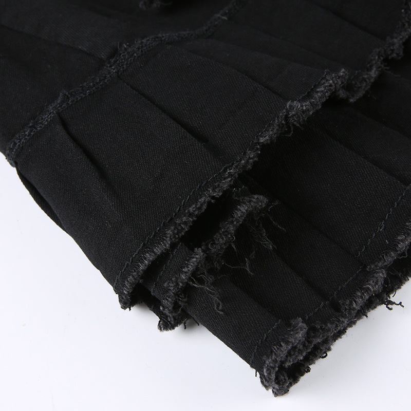 Crafted from high-quality denim, this black skirt features a unique irregular pleated design that adds a touch of flair to your outfit. The micro elasticity ensures a comfortable fit while allowing you to move freely throughout your day. With a main fabric composition of cotton, this skirt combines durability with a soft feel against the skin.